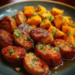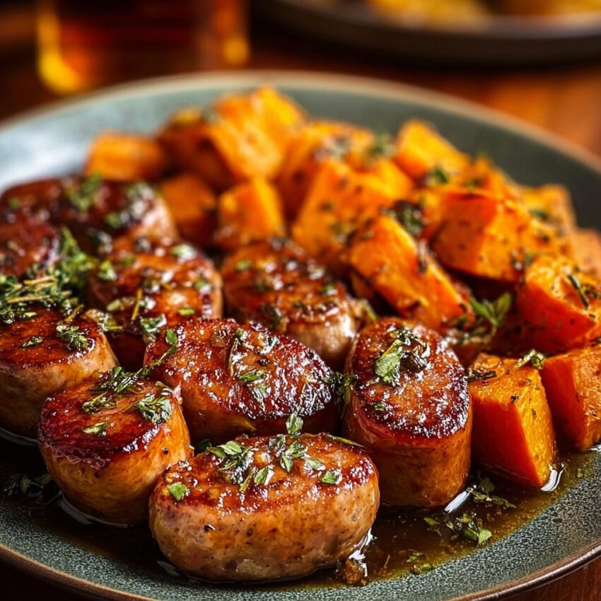 A comforting dish featuring honey garlic sausage and tender sweet potatoes, perfect for busy weeknights.